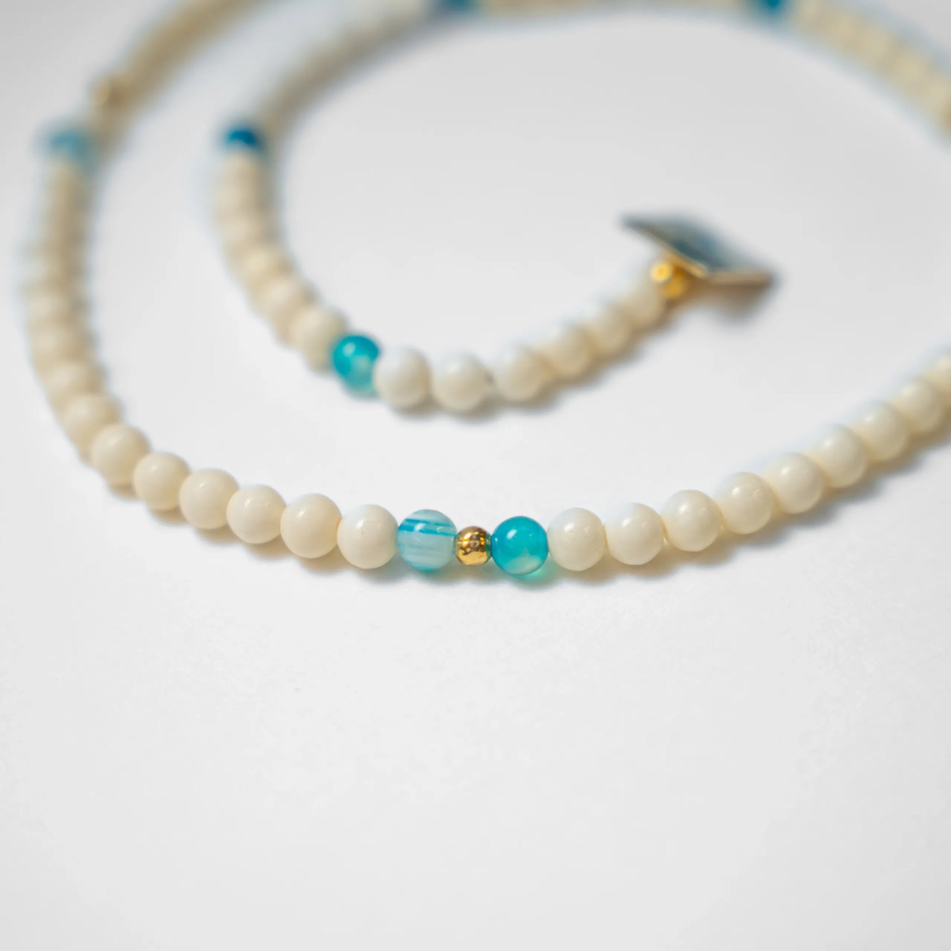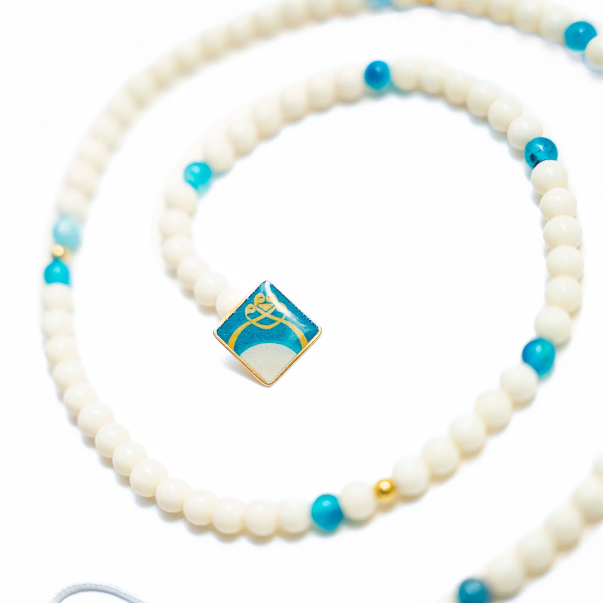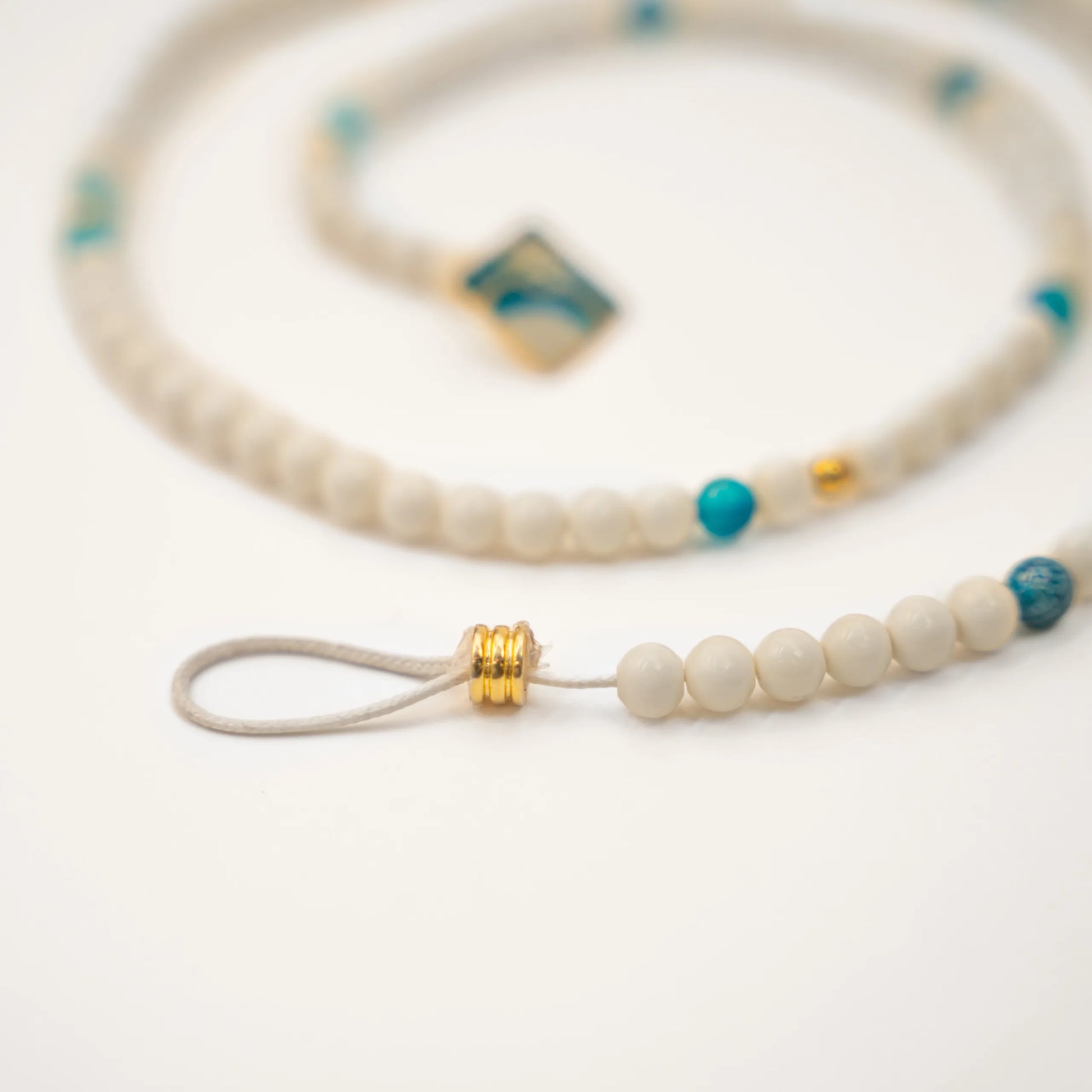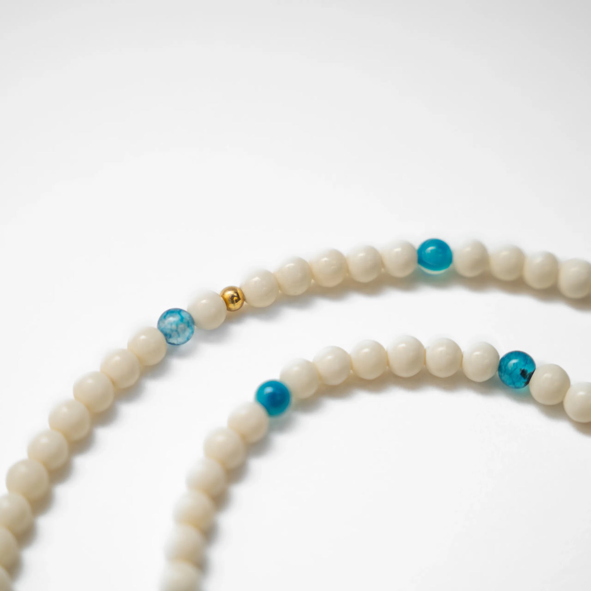 Bracelet Tasbih 100 perles en os de chameau et apatite avec accents argentés