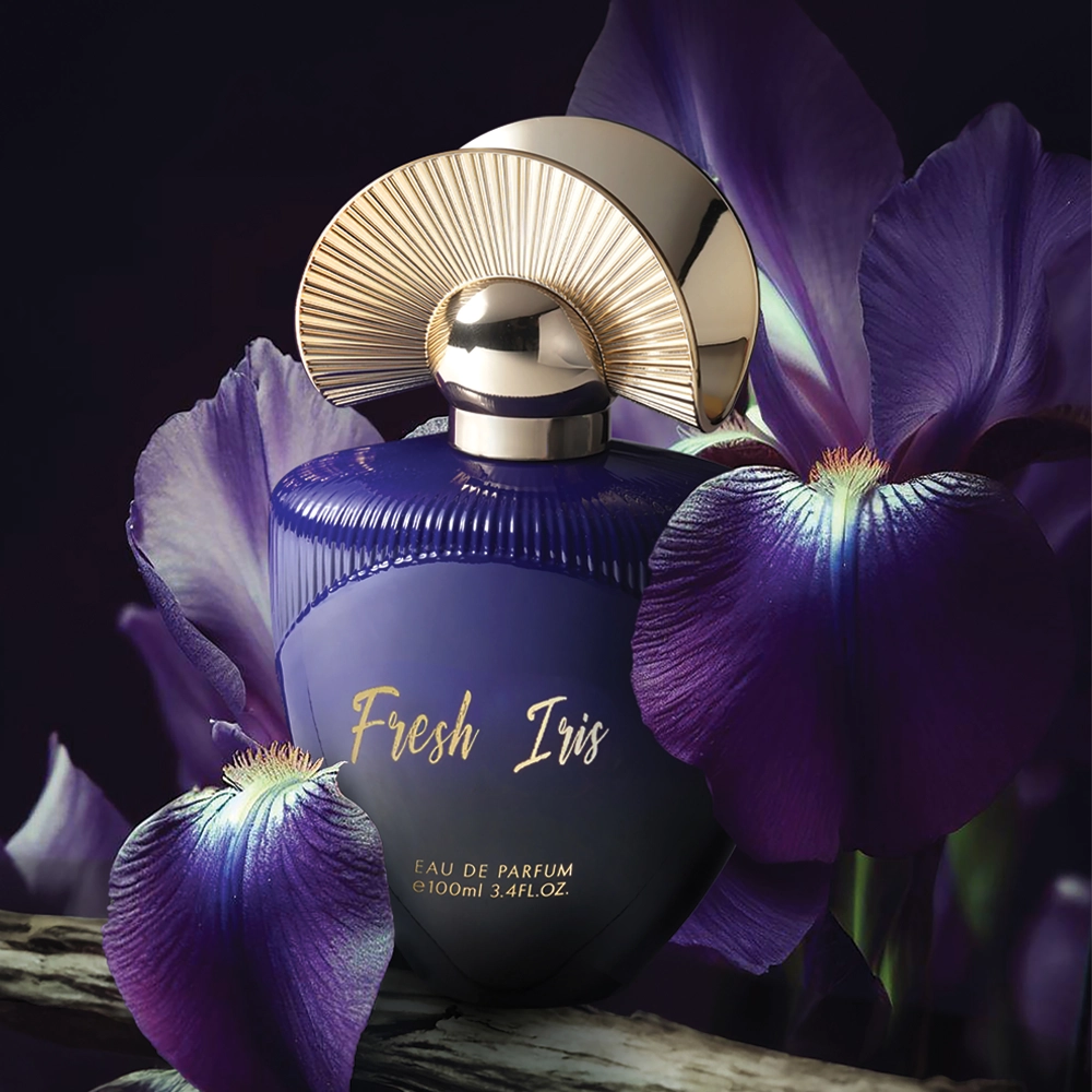 Fresh Iris est une eau de parfum élégante aux notes chaleureuses de safran et de fruits rouges, avec un cœur d'iris, de chocolat et de rose, et un fond d'ambre gris, de mousse et de musc. Elle offre une expérience olfactive riche et luxueuse.