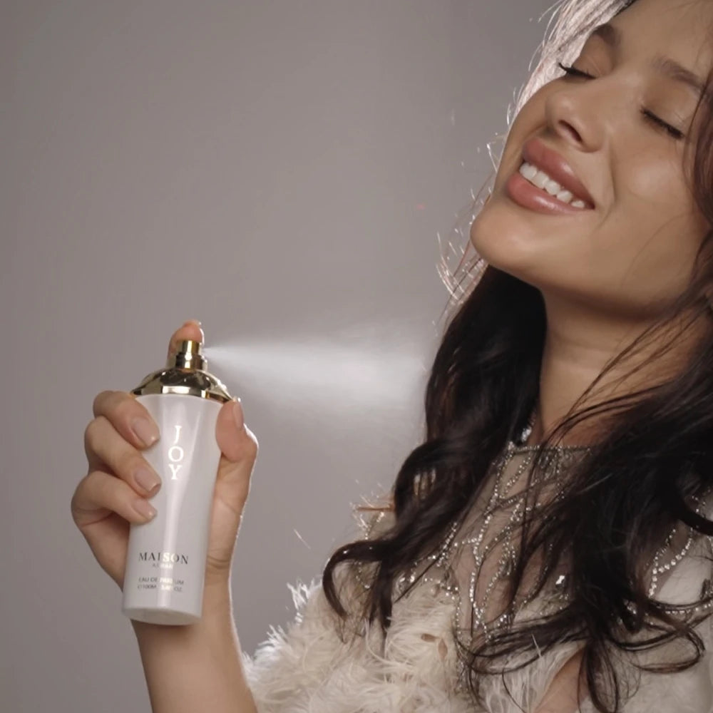 Joy opens with a vibrant burst of plum, red fruits, and pear, melts into a sunny heart of tuberose and solar notes, and finishes with a creamy blend of musk and cashmere. A light-hearted, everyday floral with radiant charm.