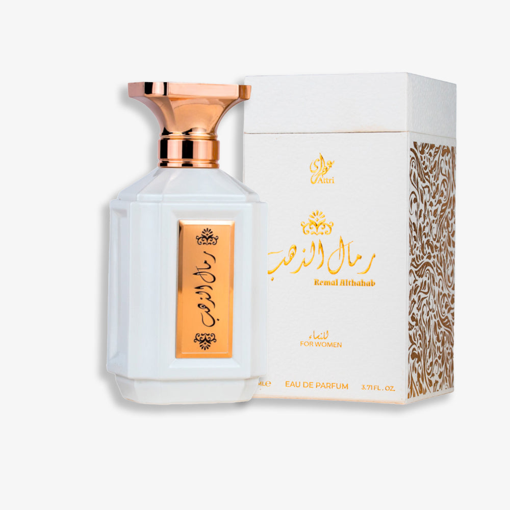 Remal Althahab Women combine la fleur d'oranger, le jasmin et une base chaude de vanille et de musc pour un parfum élégant et séduisant qui respire le charme féminin.