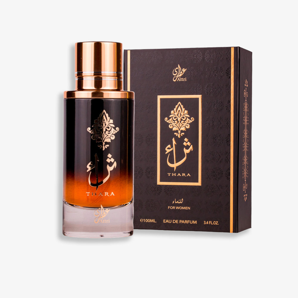 Thara Women mélange la poire, la rose noire et la vanille avec du patchouli pour un parfum chaleureux et féminin plein de charme et d'élégance.