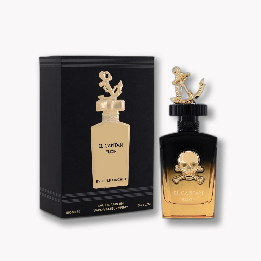 Magnetic and intense, El Capitan Elixir opens with bergamot, mint, and lavender, crashes into rich amber, benzoin, and cinnamon, and sinks into a warm base of vanilla, tonka, and musk. A bold fragrance shrouded in mystery.