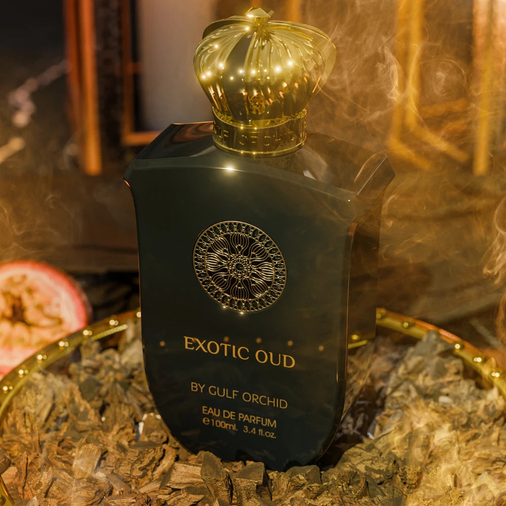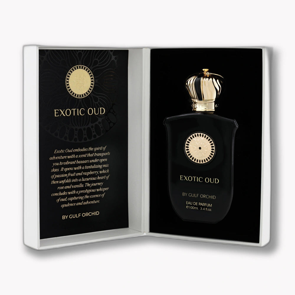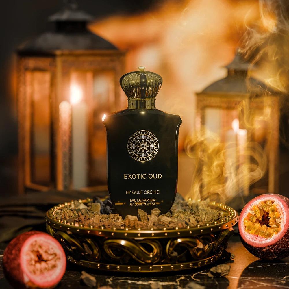 Exotic Oud opens with vibrant passionfruit and raspberry, unfolds into a bold heart of rose and coffee, and settles into a rich base of oud, leather, and vanilla. Dark, juicy, and unapologetically captivating.