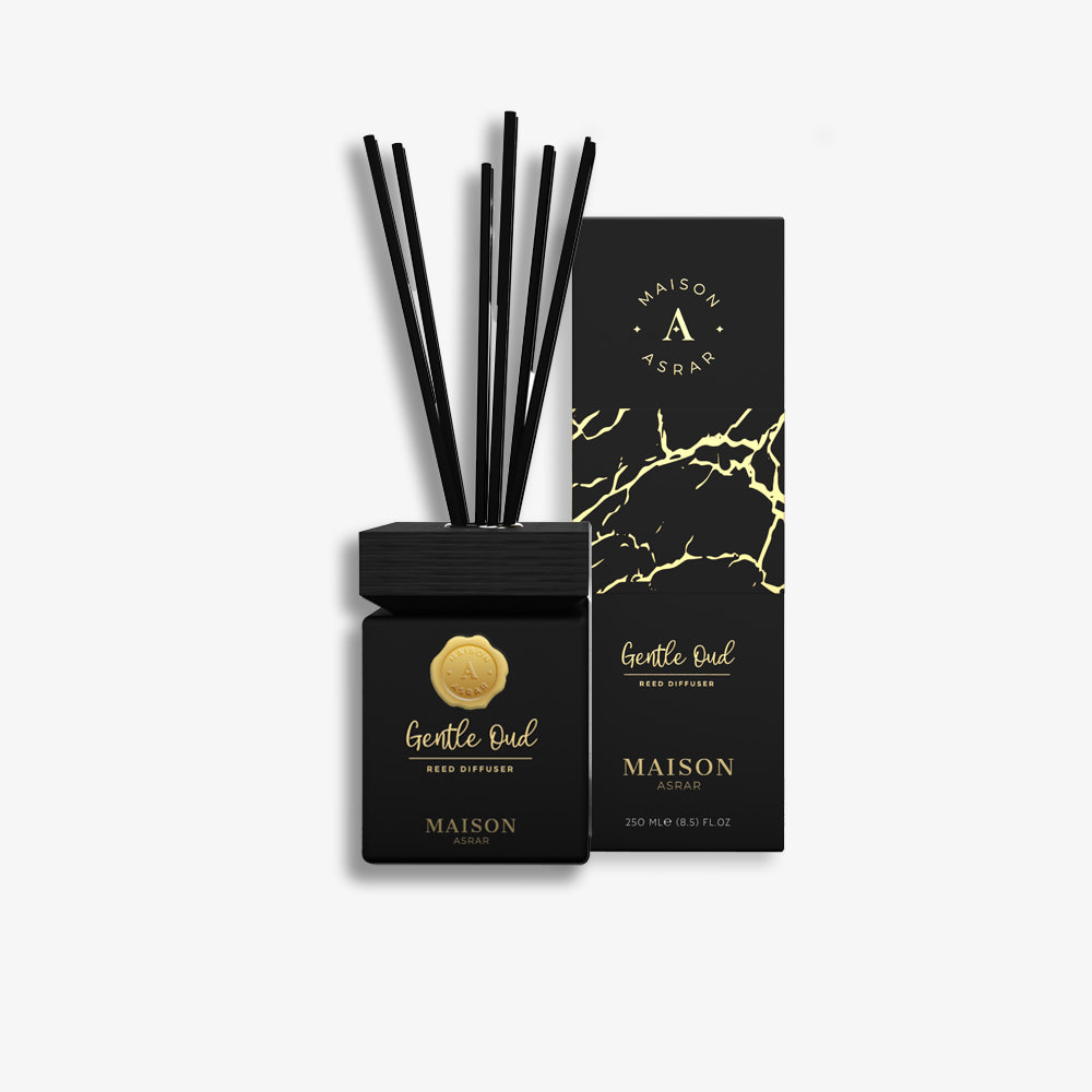 Gentle Oud Reed Diffuser delivers a sophisticated aroma, blending Lavender and Saffron at the top with an Ambery Cedarwood heart, anchored by Incense, Musk, and Oud. This long-lasting fragrance enhances any space with elegance and tranquility.