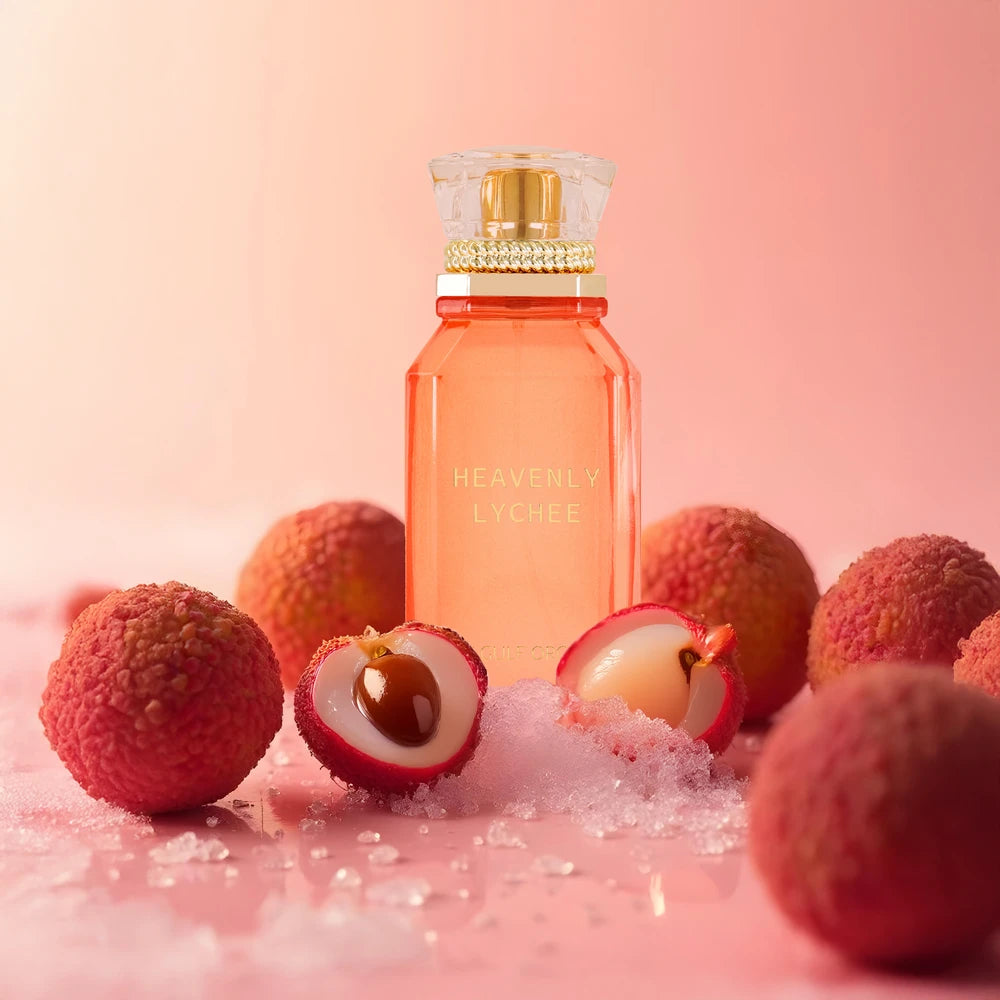 Bright and juicy, this scent bursts with lychee, cherry, and apple, flirts with violet and rose, and wraps in creamy raspberry musk and vanilla. A fruity floral cloud that’s fresh, fun, and unforgettable.