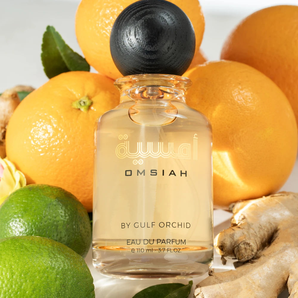 Silky, confident, and refined. Omsia opens with bold ginger and lemon, softened by bright pineapple. Lavandin and marine notes add cool elegance, while white wood and leather leave a lasting impression of understated luxury.