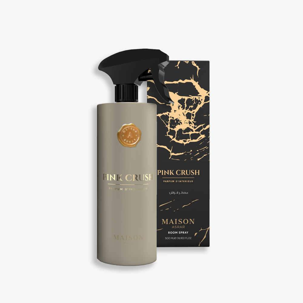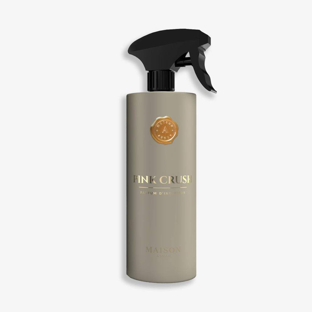 Pink Crush Room Spray - A floral-fruity oriental spray with raspberry, rose, and patchouli, perfect for adding warmth and elegance to any space.
