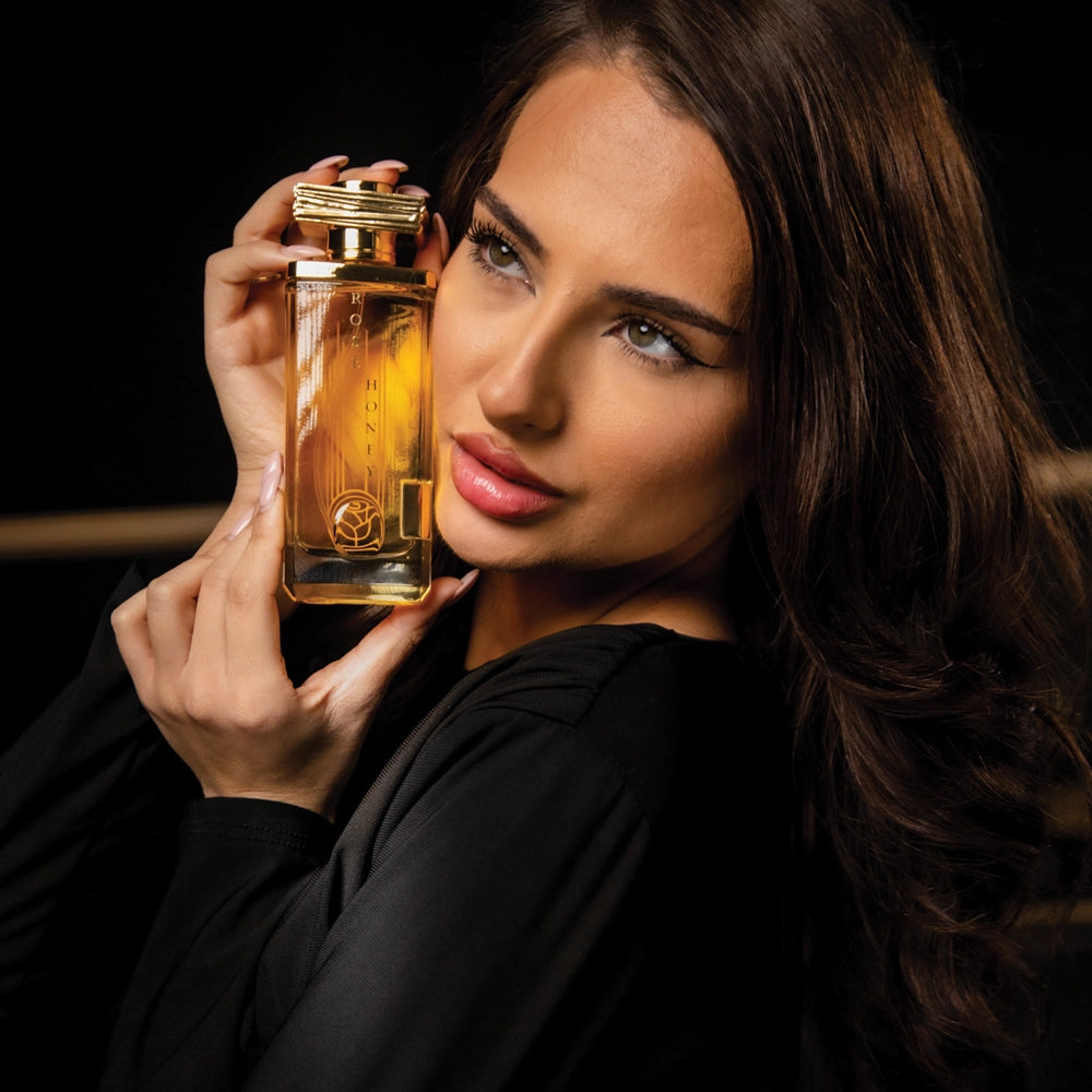 Rose Honey is a bold, rich fragrance blending sweet honey and rose with mandarin, plum, and smoky tobacco for an intriguing oriental twist.