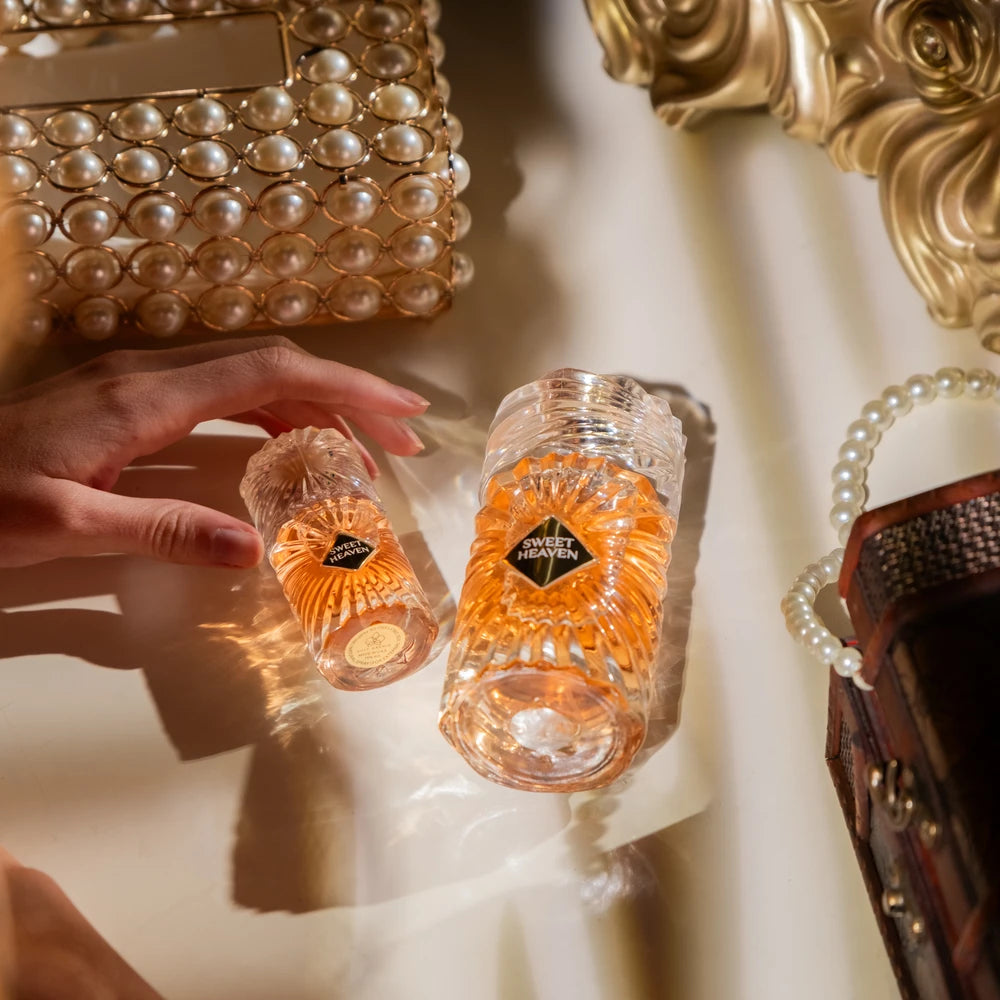 Sweet Heaven blends cocoa, amber, and sandalwood with creamy vanilla for a woody-sweet fragrance that offers warmth, sophistication, and sheer indulgence.