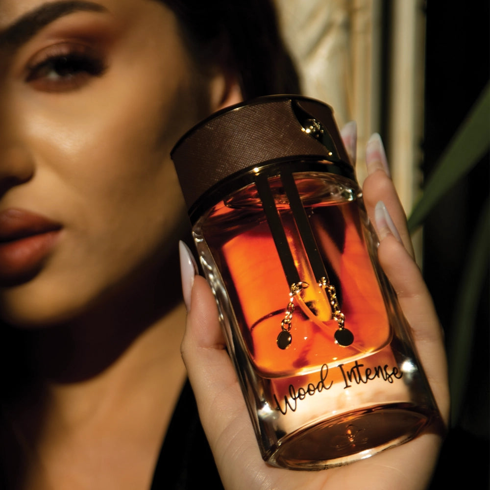 Wood Intense combines woody and balsamic notes with powdery orris, fresh spices, and a rich base of ambergris and oud for an elegant, mysterious scent.