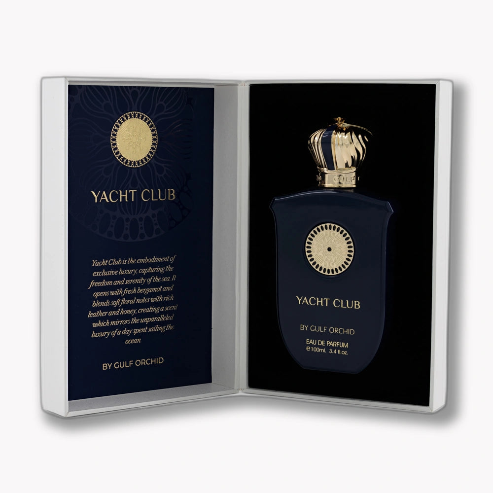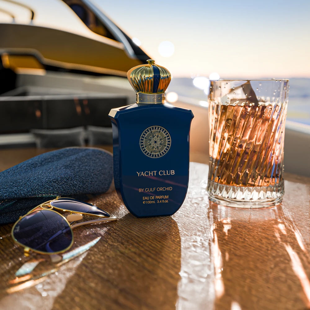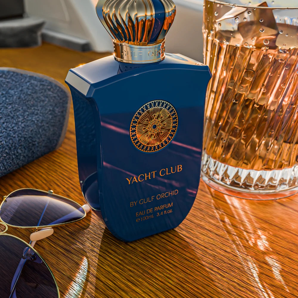 Yacht Club blends fresh bergamot with smoky incense and labdanum, softened by violet and sweetened with honey and vanilla. A luxurious aquatic oriental scent evoking crisp sea breezes and effortless elegance.